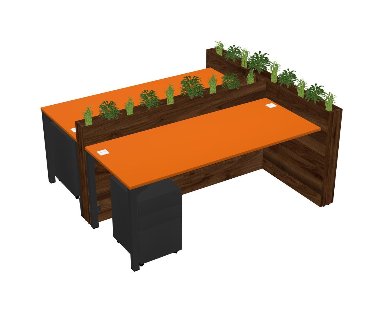 Orange Rectangular Shared Office Desk System Metal Mobile Drawers (Pots & Plants Sold Separately)