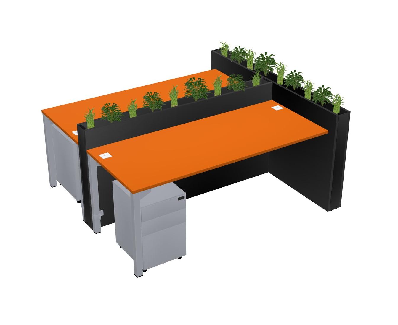 Orange Rectangular Shared Office Desk System Metal Mobile Drawers (Pots & Plants Sold Separately)