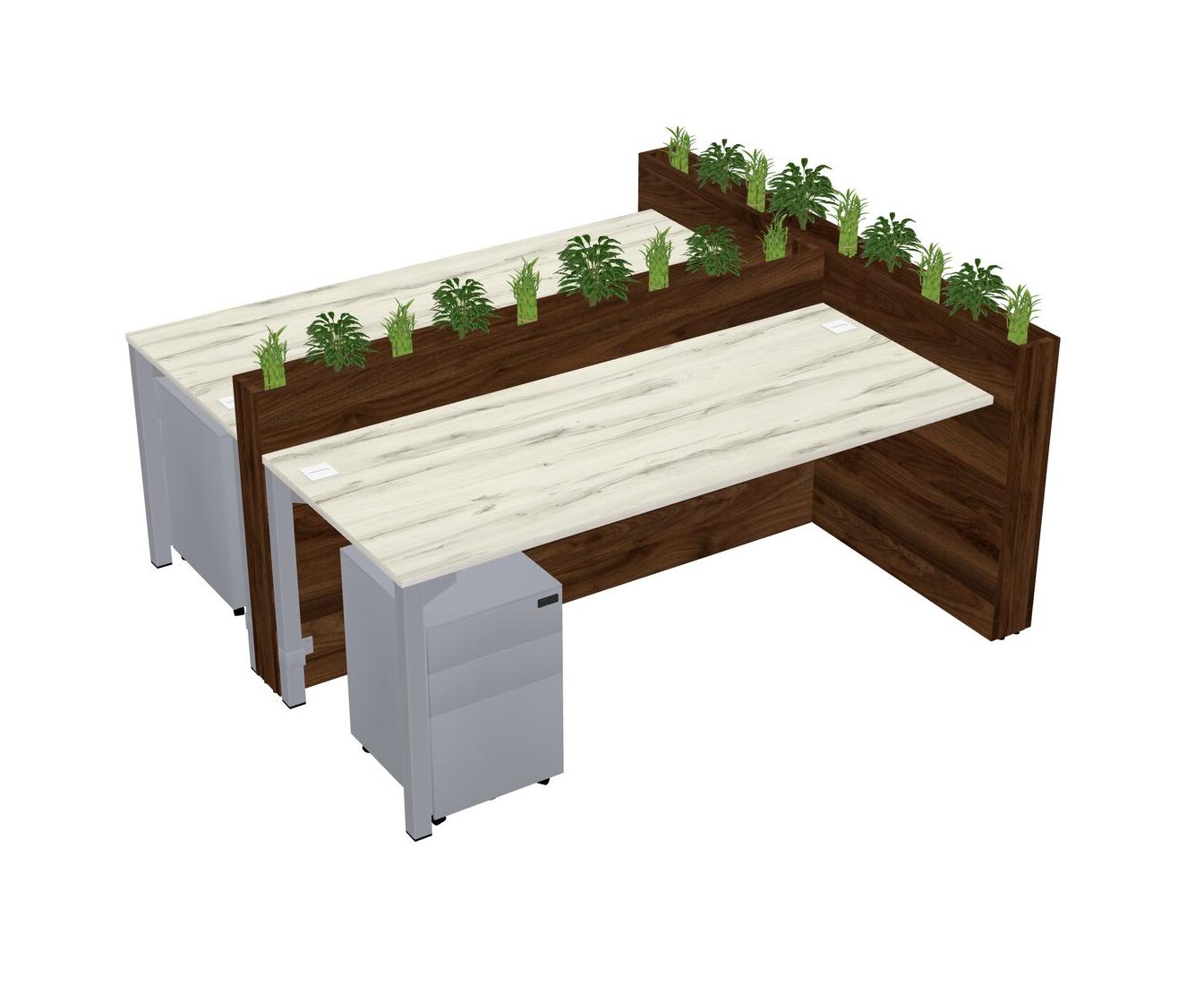 Heinne Holz Rectangular Shared Office Desk System Metal Mobile Drawers (Pots & Plants Sold Separately)