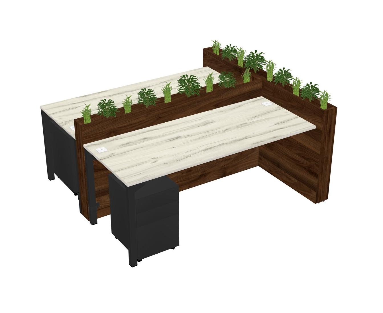 Heinne Holz Rectangular Shared Office Desk System Metal Mobile Drawers (Pots & Plants Sold Separately)