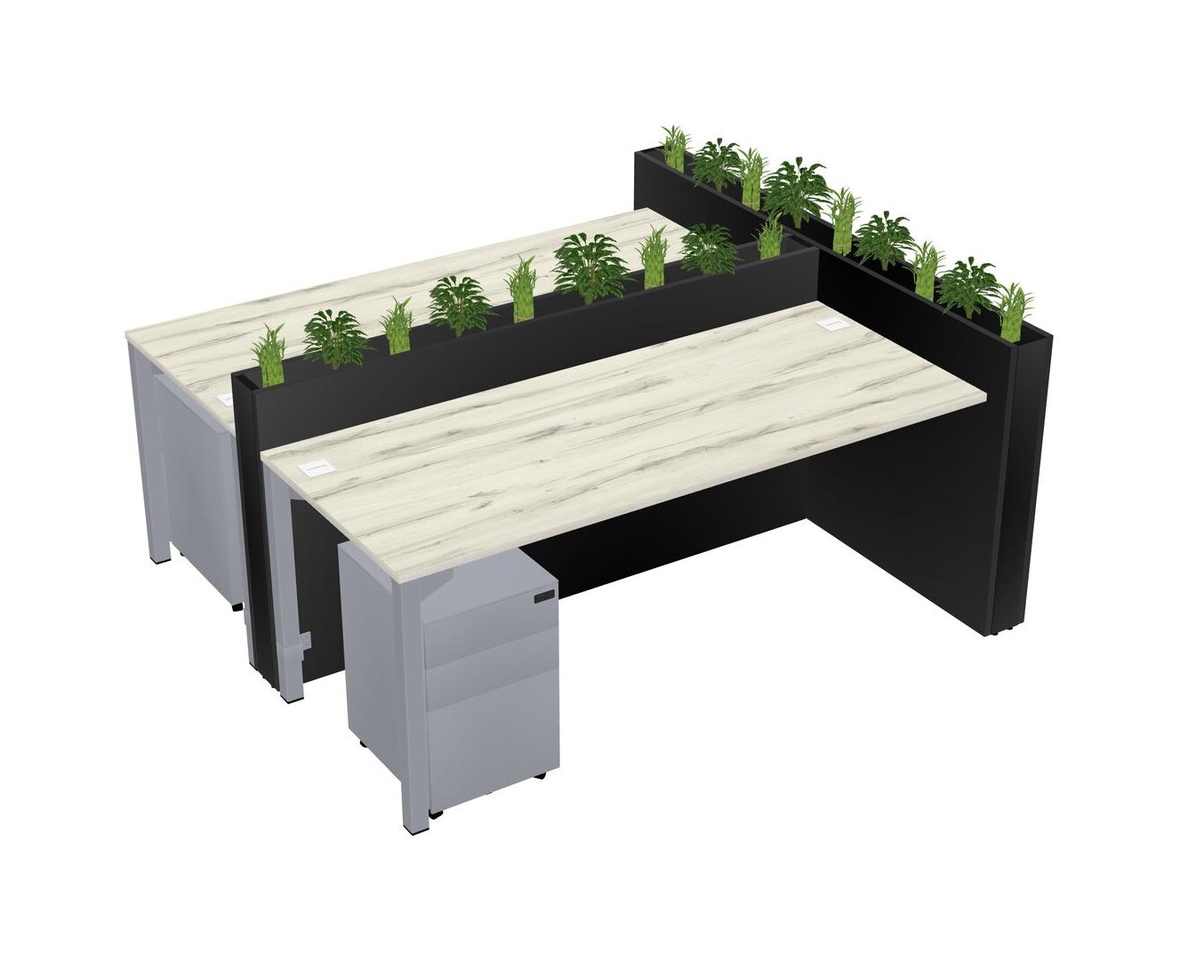 Heinne Holz Rectangular Shared Office Desk System Metal Mobile Drawers (Pots & Plants Sold Separately)