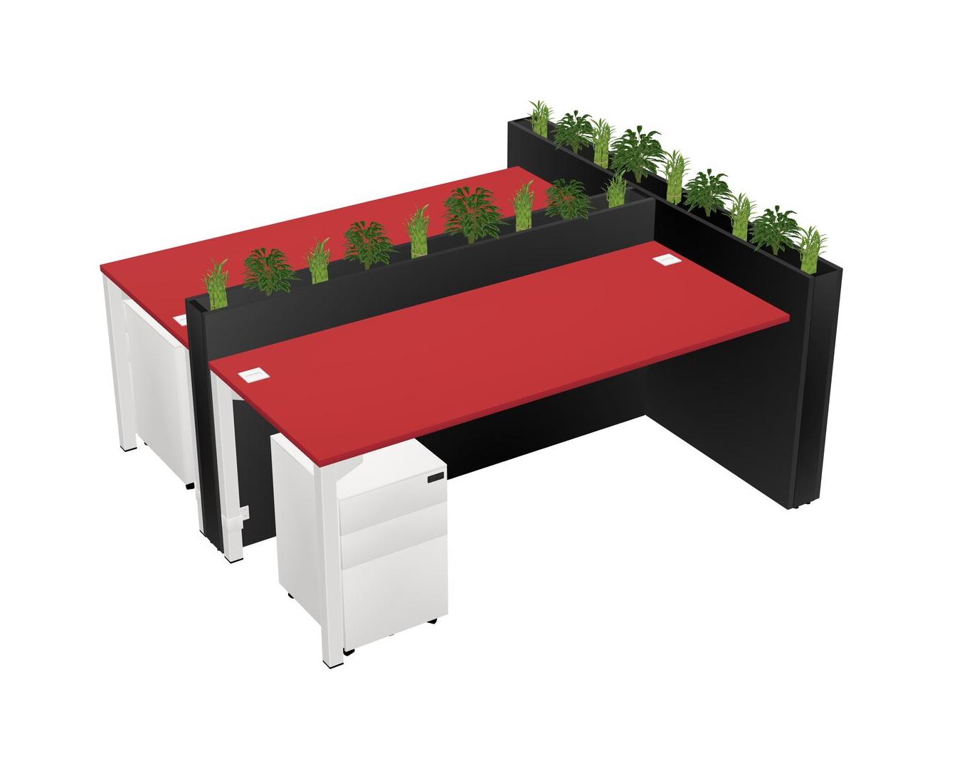 Prism Red Rectangular Shared Office Desk System Metal Mobile Drawers (Pots & Plants Sold Separately)