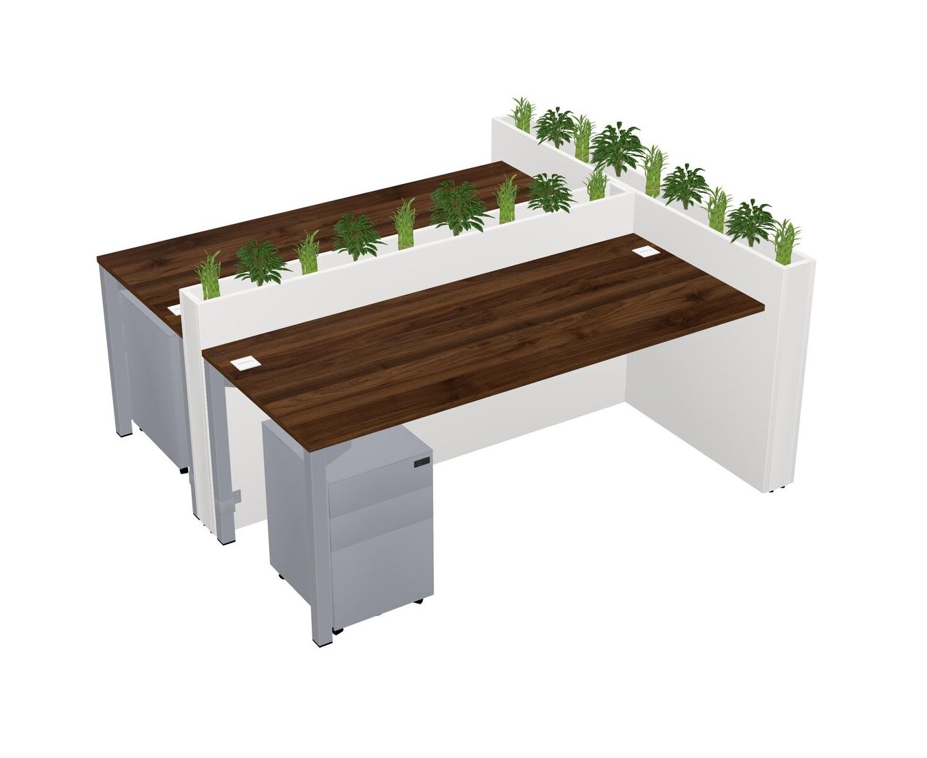 Columbia Walnut Rectangular Shared Office Desk System Metal Mobile Drawers (Pots & Plants Sold Separately)