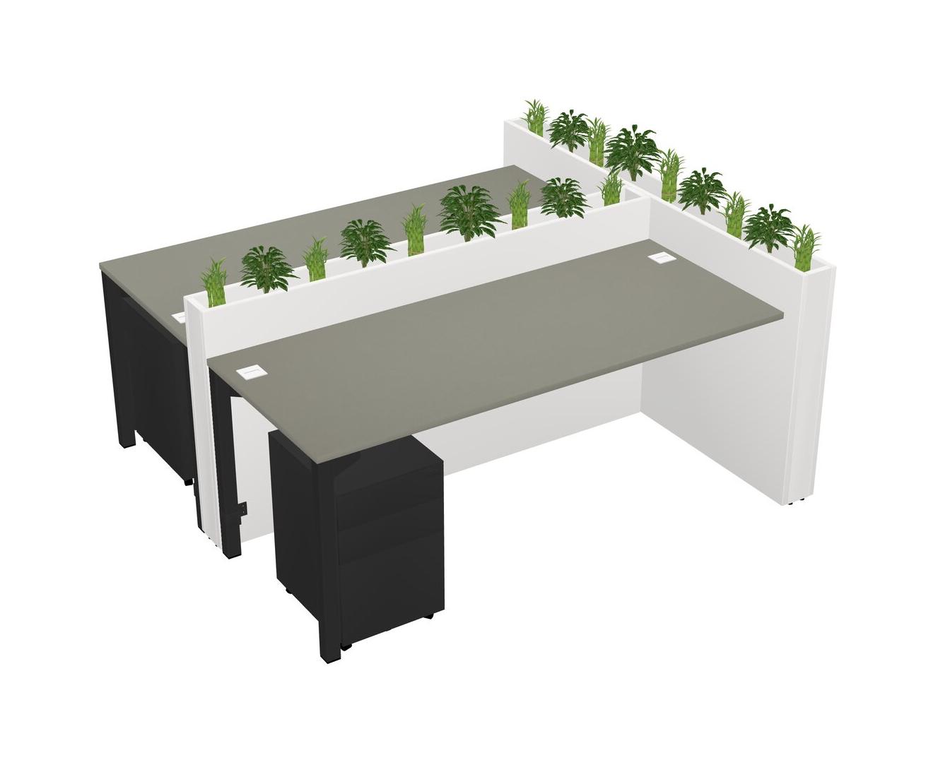 Grey Shadows Rectangular Shared Office Desk System Metal Mobile Drawers (Pots & Plants Sold Separately)