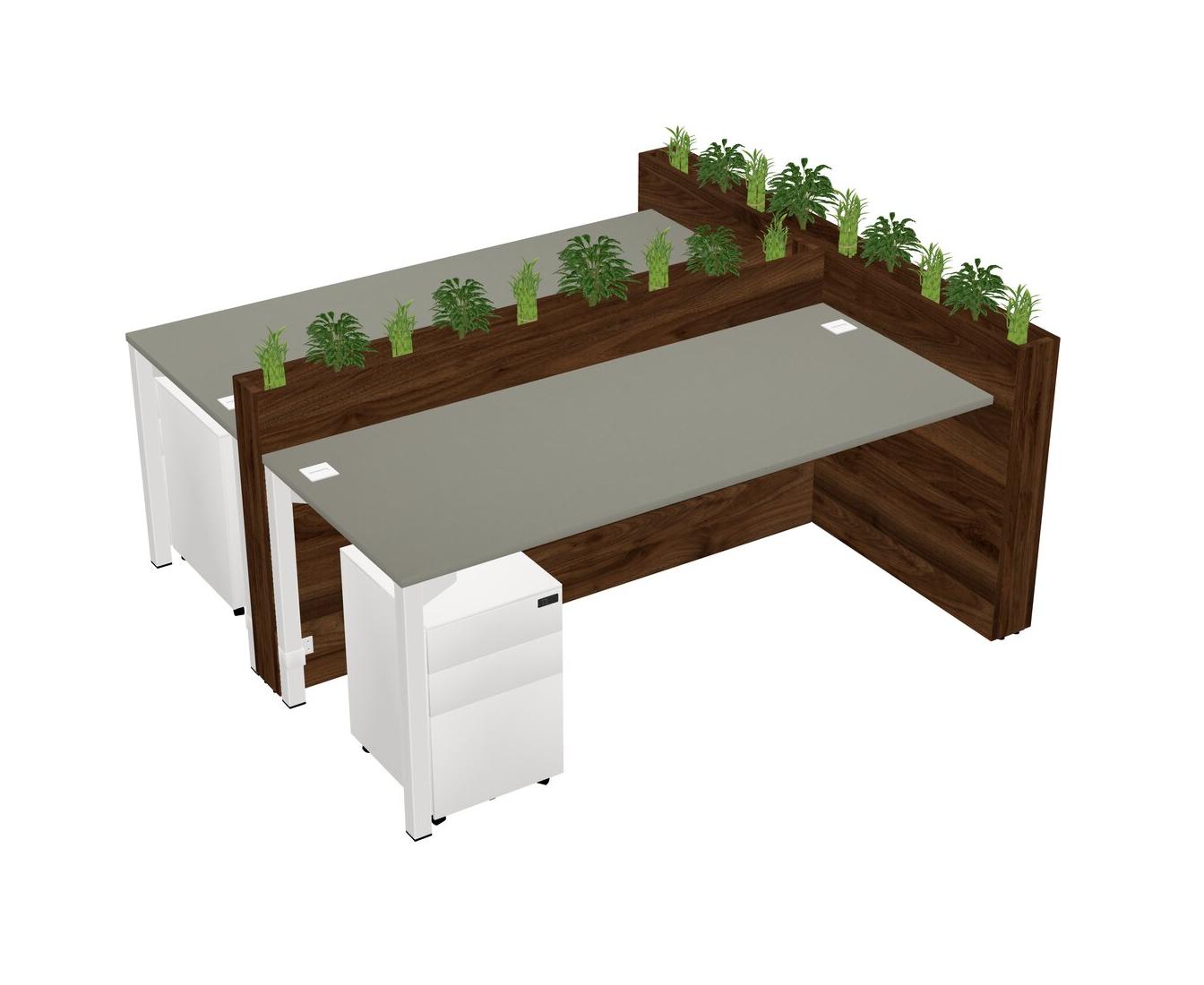 Grey Shadows Rectangular Shared Office Desk System Metal Mobile Drawers (Pots & Plants Sold Separately)