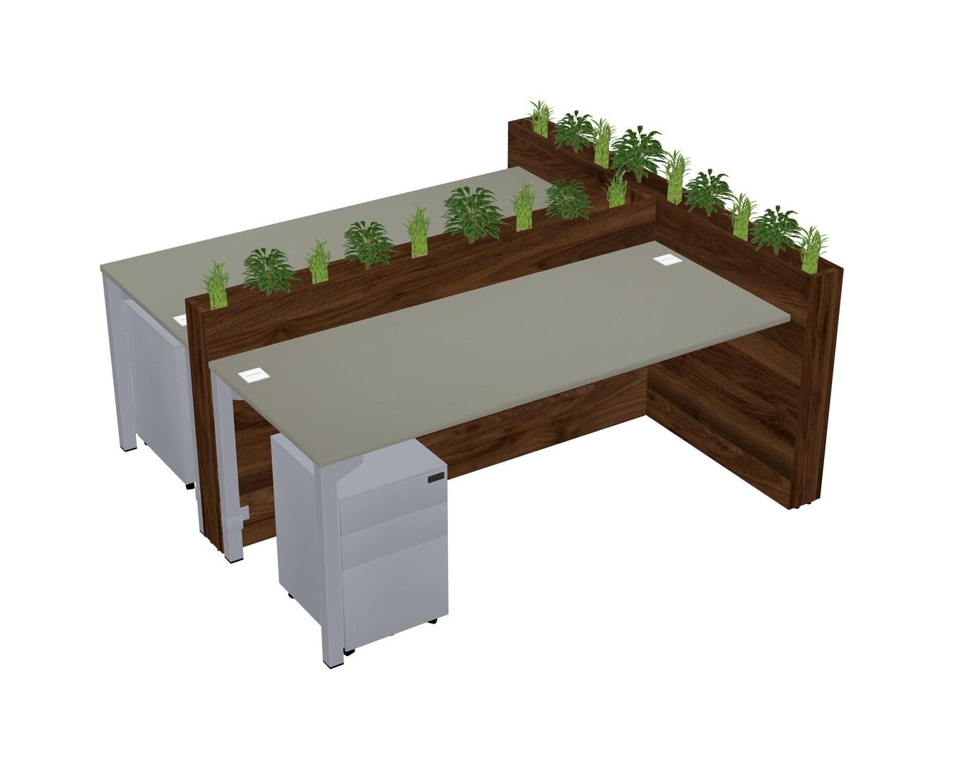 Grey Shadows Rectangular Shared Office Desk System Metal Mobile Drawers (Pots & Plants Sold Separately)