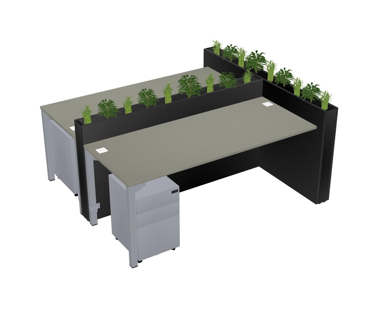 Grey Shadows Rectangular Shared Office Desk System Metal Mobile Drawers (Pots & Plants Sold Separately)