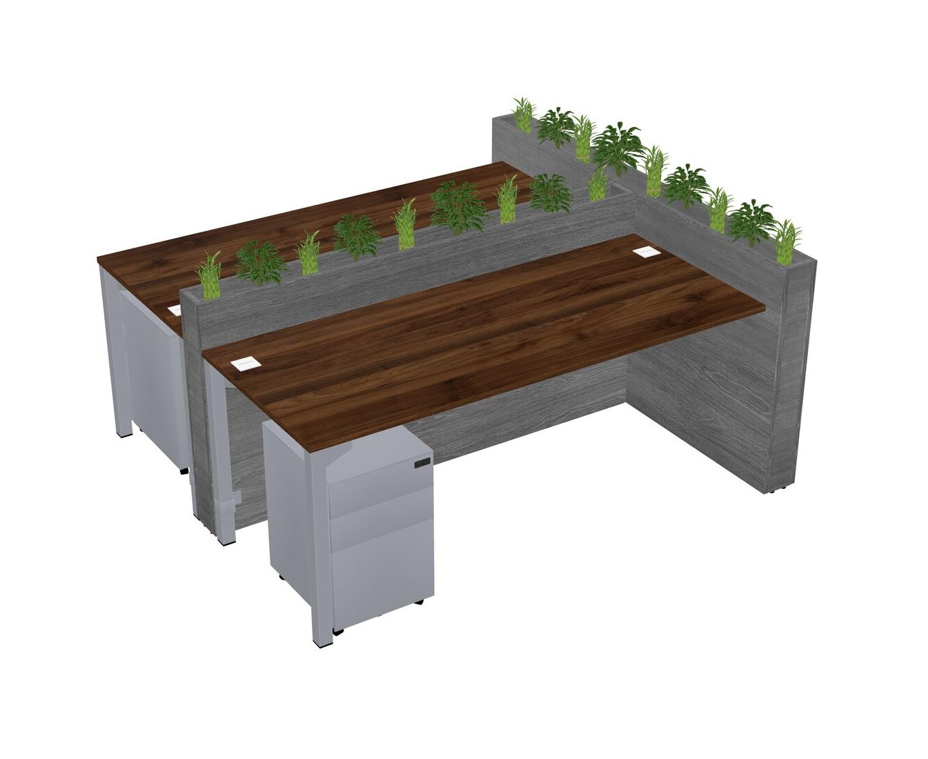 Columbia Walnut Rectangular Shared Office Desk System Metal Mobile Drawers (Pots & Plants Sold Separately)