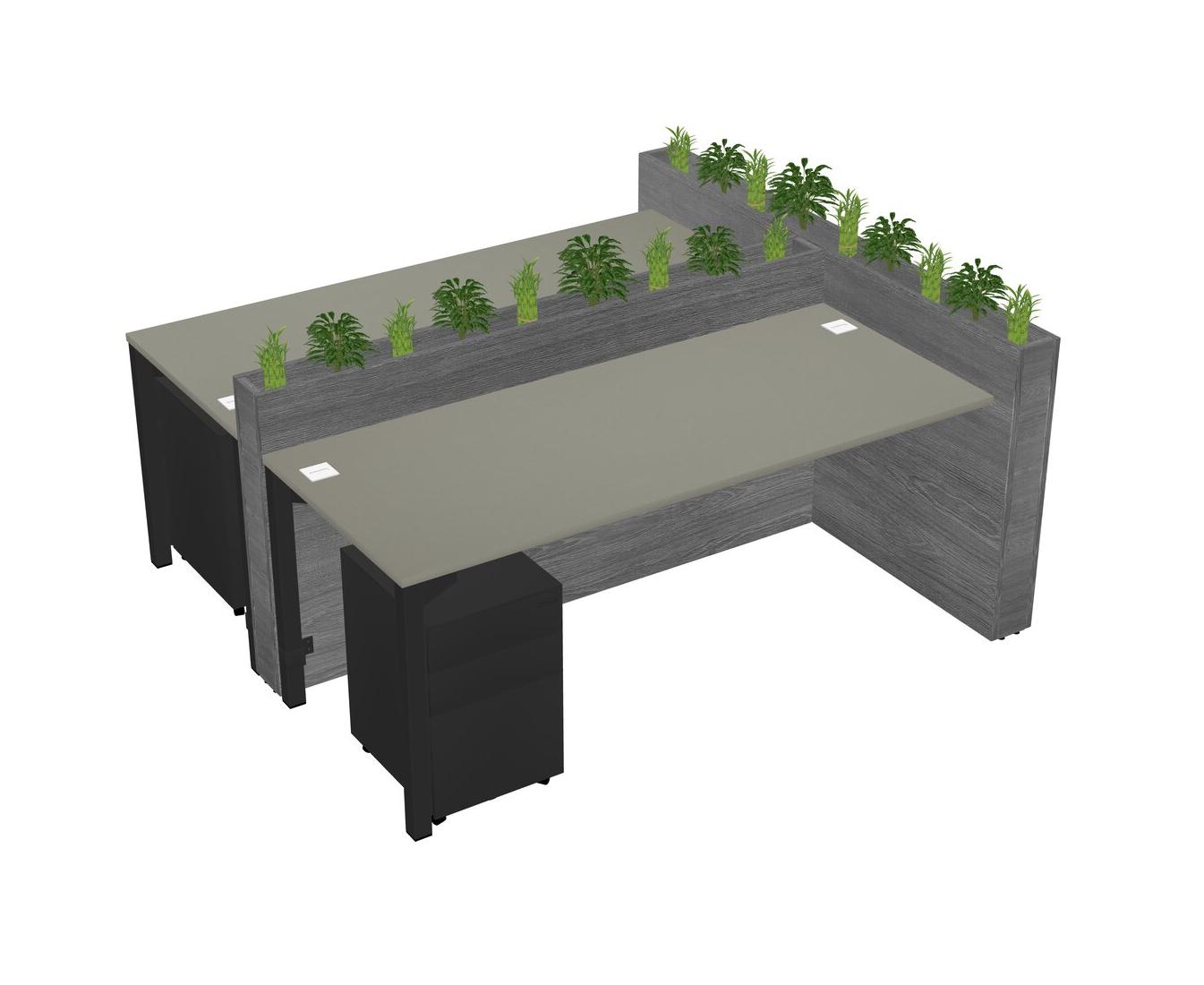 Grey Shadows Rectangular Shared Office Desk System Metal Mobile Drawers (Pots & Plants Sold Separately)