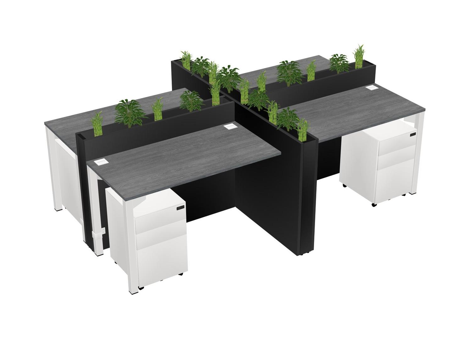 Grey Rectangular Shared Office Desk For 4 Persons Let Nature Help Flourish Your Productivity The Base Comes With An Adjustable Shelf To Provide Space For Pots (Pots & Plants Sold Separately)