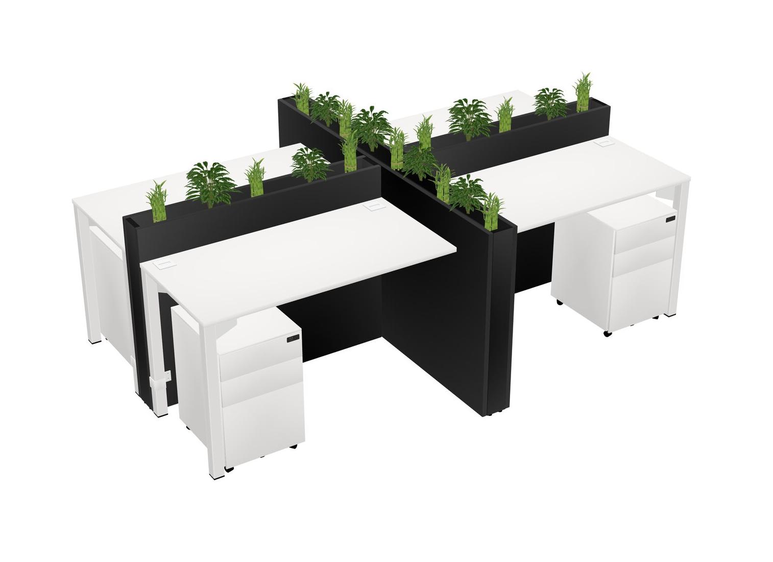 White Rectangular Shared Office Desk For 4 Persons Let Nature Help Flourish Your Productivity The Base Comes With An Adjustable Shelf To Provide Space For Pots (Pots & Plants Sold Separately)