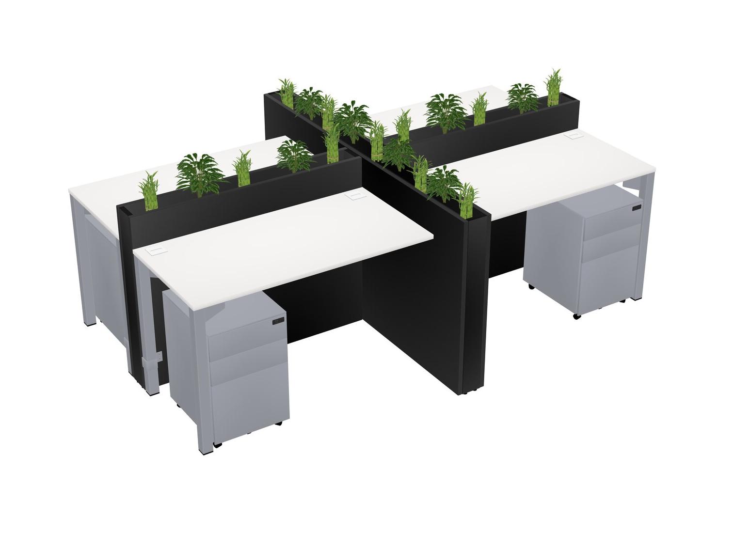 White Rectangular Shared Office Desk For 4 Persons Let Nature Help Flourish Your Productivity The Base Comes With An Adjustable Shelf To Provide Space For Pots (Pots & Plants Sold Separately)