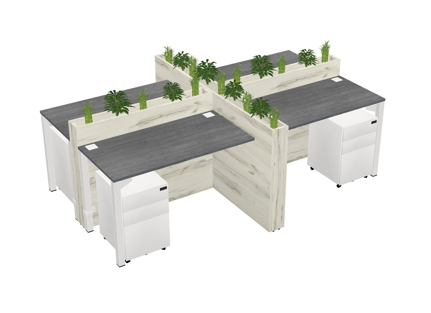 Grey Rectangular Shared Office Desk For 4 Persons Let Nature Help Flourish Your Productivity The Base Comes With An Adjustable Shelf To Provide Space For Pots (Pots & Plants Sold Separately)