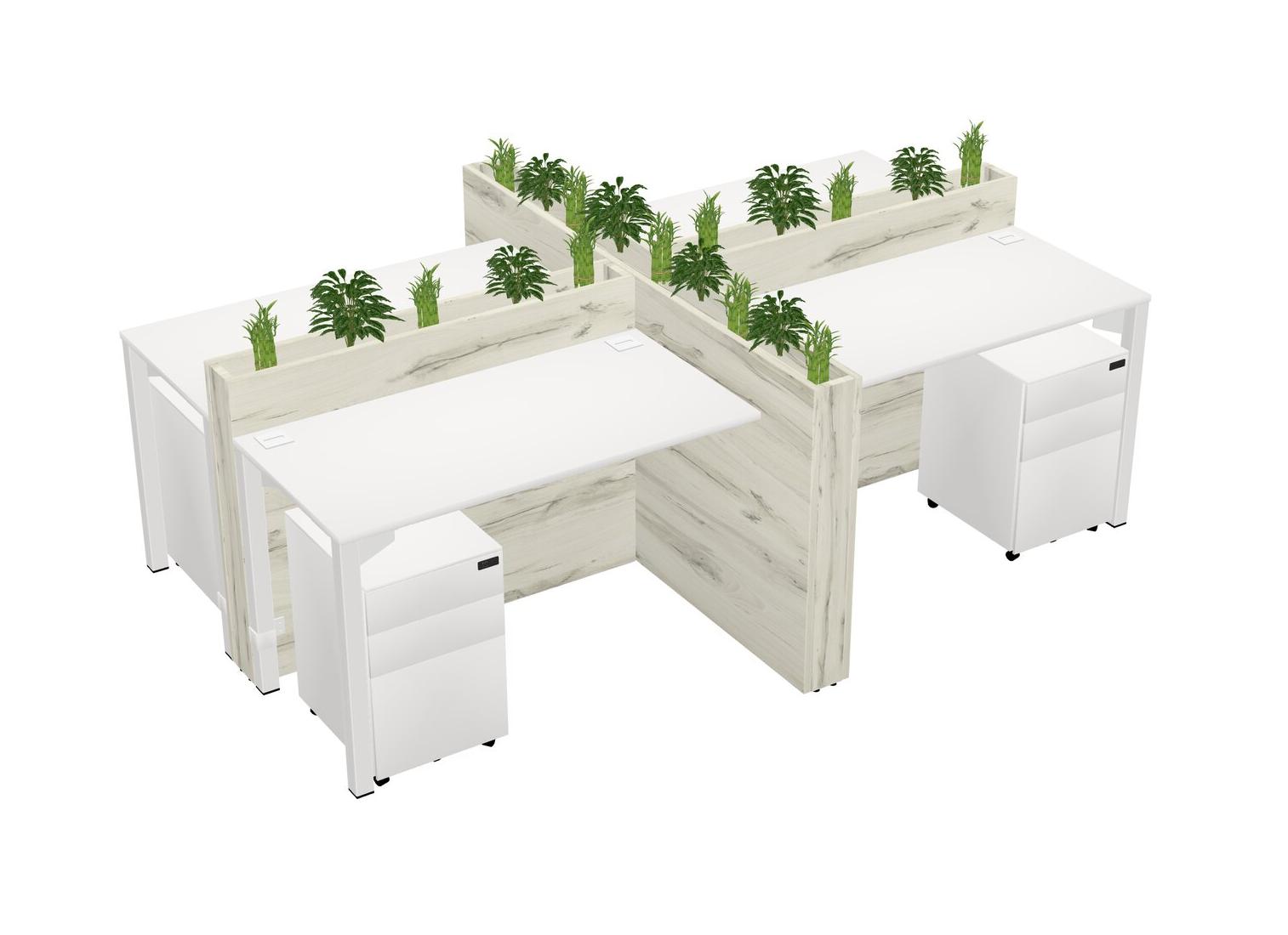 White Rectangular Shared Office Desk For 4 Persons Let Nature Help Flourish Your Productivity The Base Comes With An Adjustable Shelf To Provide Space For Pots (Pots & Plants Sold Separately)