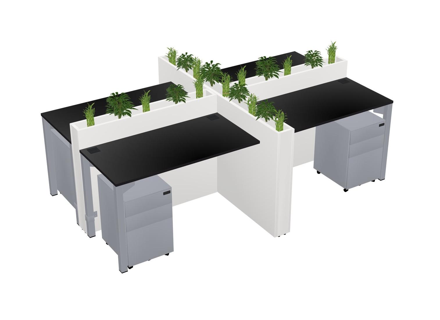 Black Rectangular Shared Office Desk For 4 Persons Let Nature Help Flourish Your Productivity The Base Comes With An Adjustable Shelf To Provide Space For Pots (Pots & Plants Sold Separately)