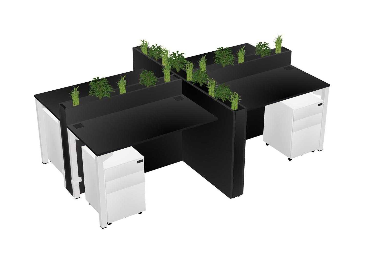 Black Rectangular Shared Office Desk For 4 Persons Let Nature Help Flourish Your Productivity The Base Comes With An Adjustable Shelf To Provide Space For Pots (Pots & Plants Sold Separately)