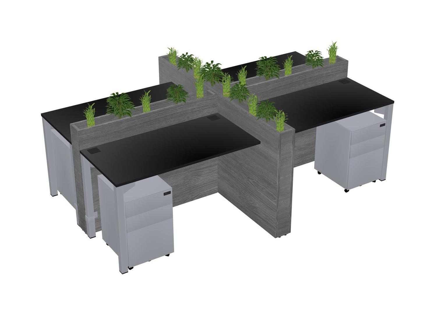 Black Rectangular Shared Office Desk For 4 Persons Let Nature Help Flourish Your Productivity The Base Comes With An Adjustable Shelf To Provide Space For Pots (Pots & Plants Sold Separately)
