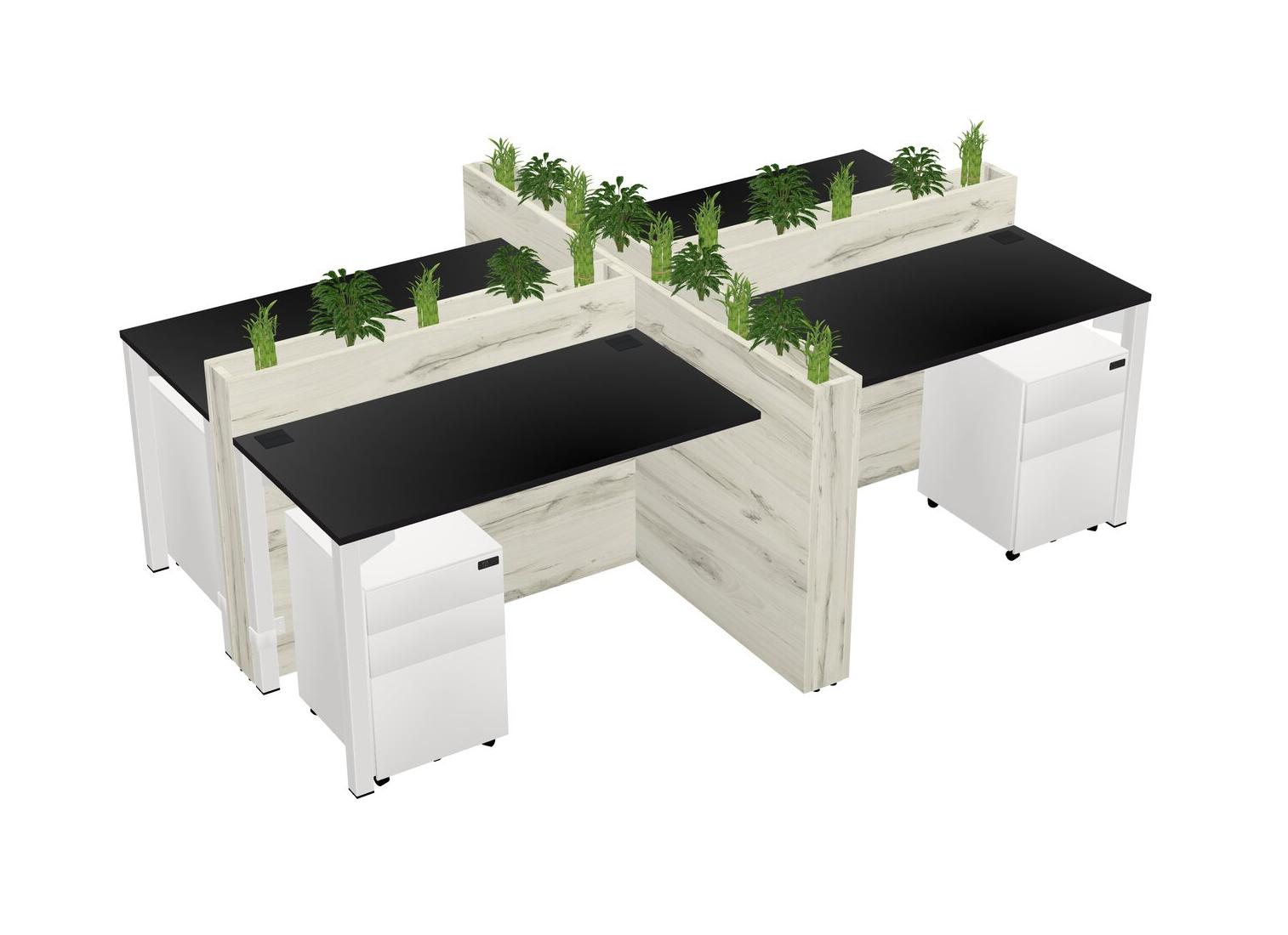 Black Rectangular Shared Office Desk For 4 Persons Let Nature Help Flourish Your Productivity The Base Comes With An Adjustable Shelf To Provide Space For Pots (Pots & Plants Sold Separately)