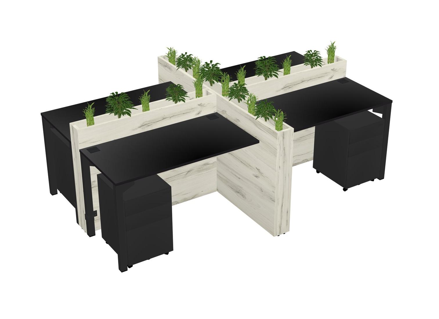 Black Rectangular Shared Office Desk For 4 Persons Let Nature Help Flourish Your Productivity The Base Comes With An Adjustable Shelf To Provide Space For Pots (Pots & Plants Sold Separately)