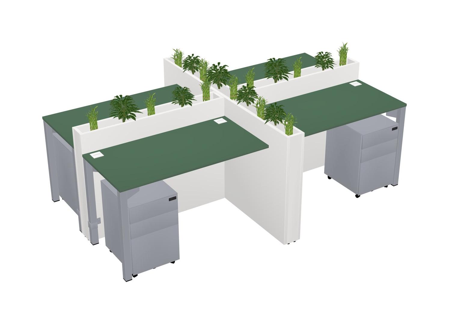 Green Rectangular Shared Office Desk For 4 Persons Let Nature Help Flourish Your Productivity The Base Comes With An Adjustable Shelf To Provide Space For Pots (Pots & Plants Sold Separately)