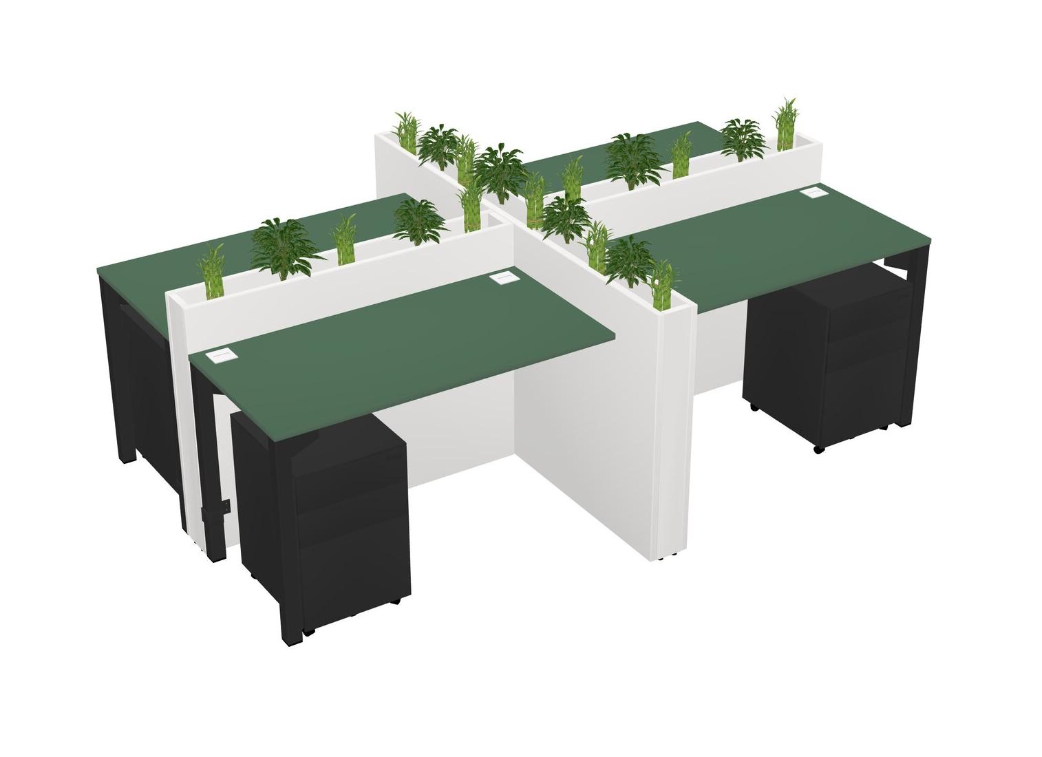 Green Rectangular Shared Office Desk For 4 Persons Let Nature Help Flourish Your Productivity The Base Comes With An Adjustable Shelf To Provide Space For Pots (Pots & Plants Sold Separately)