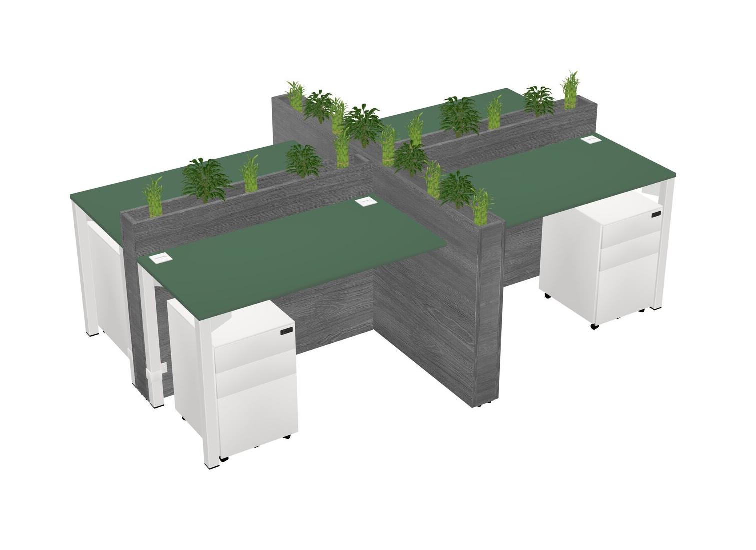 Green Rectangular Shared Office Desk For 4 Persons Let Nature Help Flourish Your Productivity The Base Comes With An Adjustable Shelf To Provide Space For Pots (Pots & Plants Sold Separately)