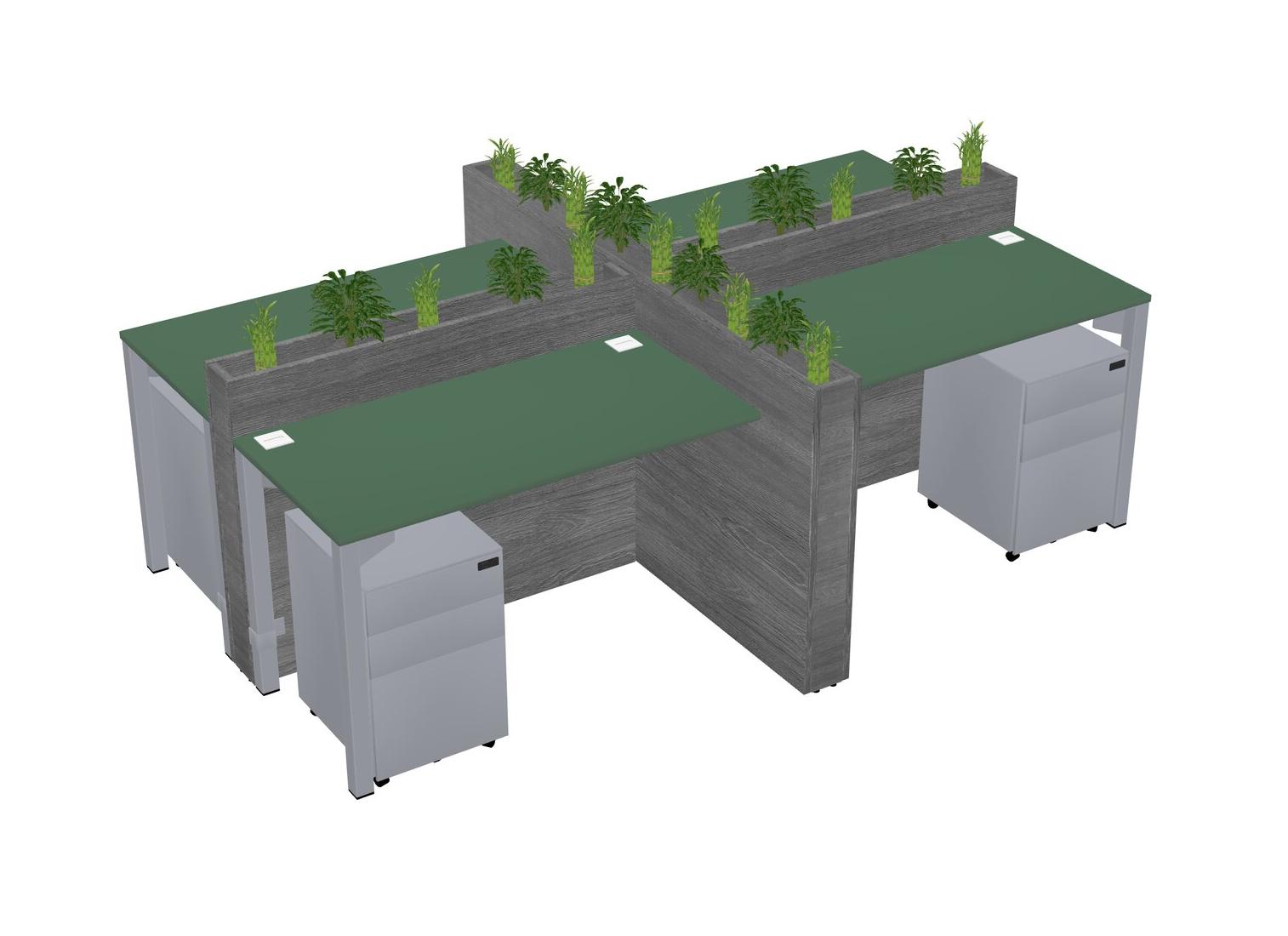 Green Rectangular Shared Office Desk For 4 Persons Let Nature Help Flourish Your Productivity The Base Comes With An Adjustable Shelf To Provide Space For Pots (Pots & Plants Sold Separately)