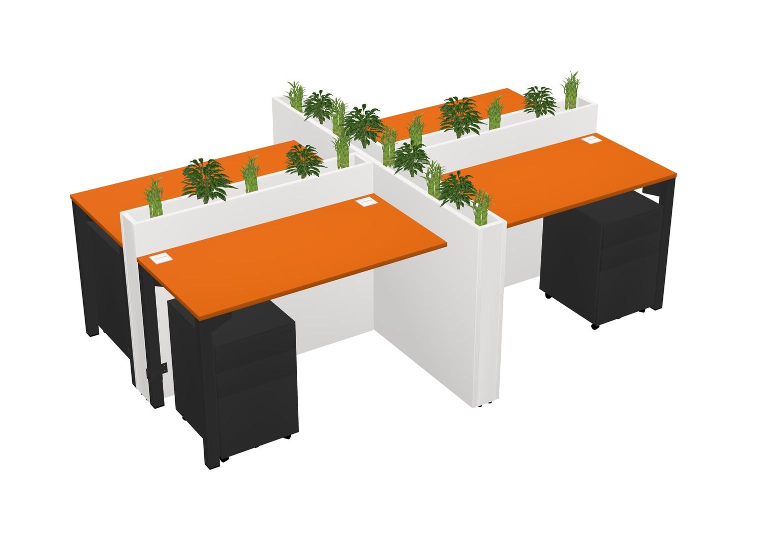 Orange Rectangular Shared Office Desk For 4 Persons Let Nature Help Flourish Your Productivity The Base Comes With An Adjustable Shelf To Provide Space For Pots (Pots & Plants Sold Separately)