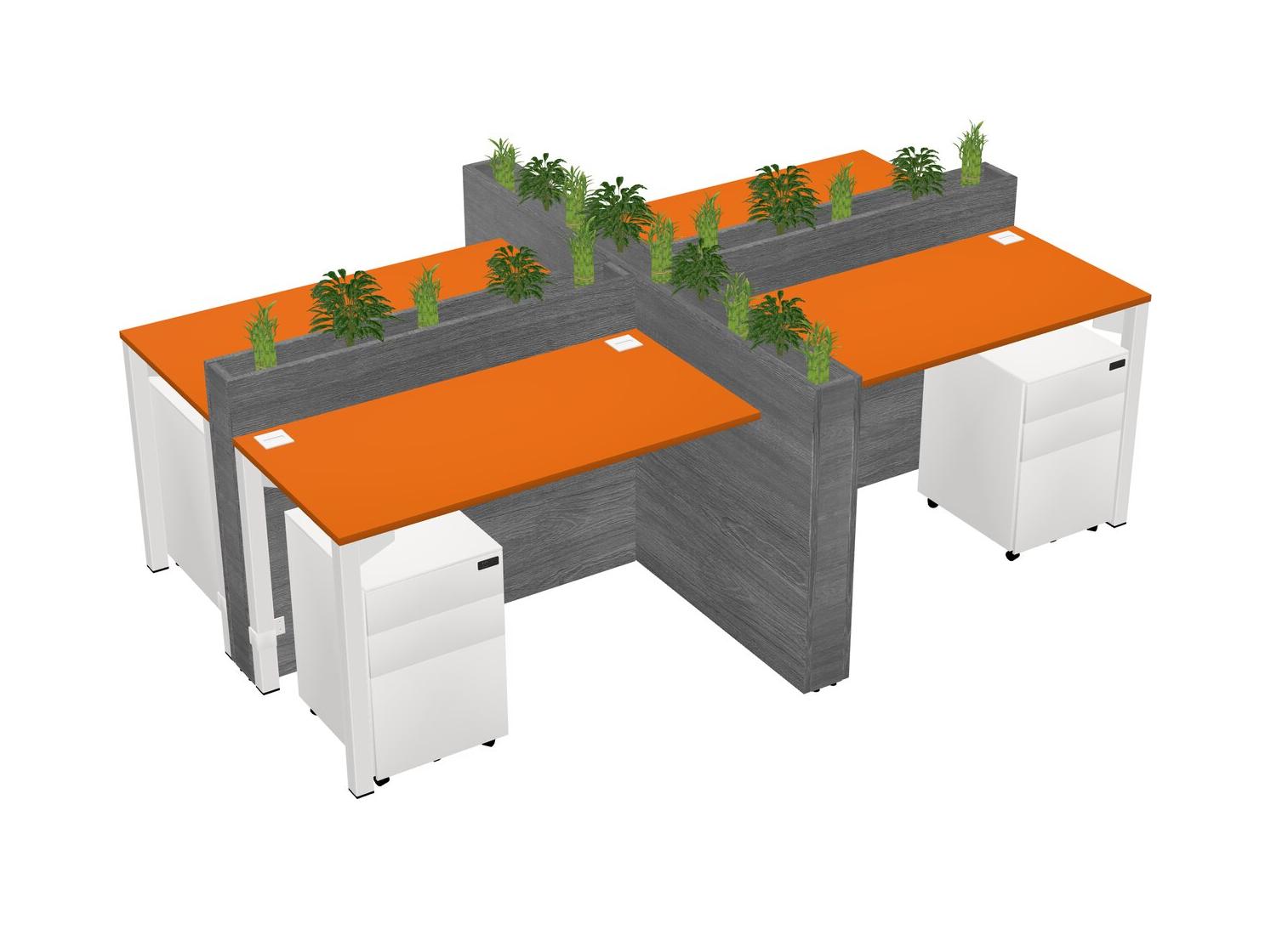 Orange Rectangular Shared Office Desk For 4 Persons Let Nature Help Flourish Your Productivity The Base Comes With An Adjustable Shelf To Provide Space For Pots (Pots & Plants Sold Separately)