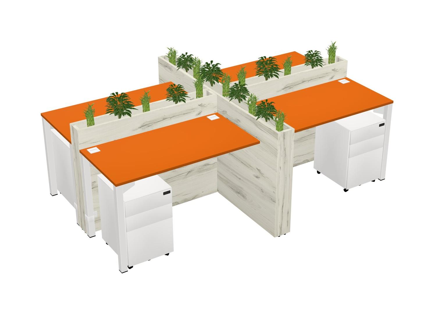 Orange Rectangular Shared Office Desk For 4 Persons Let Nature Help Flourish Your Productivity The Base Comes With An Adjustable Shelf To Provide Space For Pots (Pots & Plants Sold Separately)