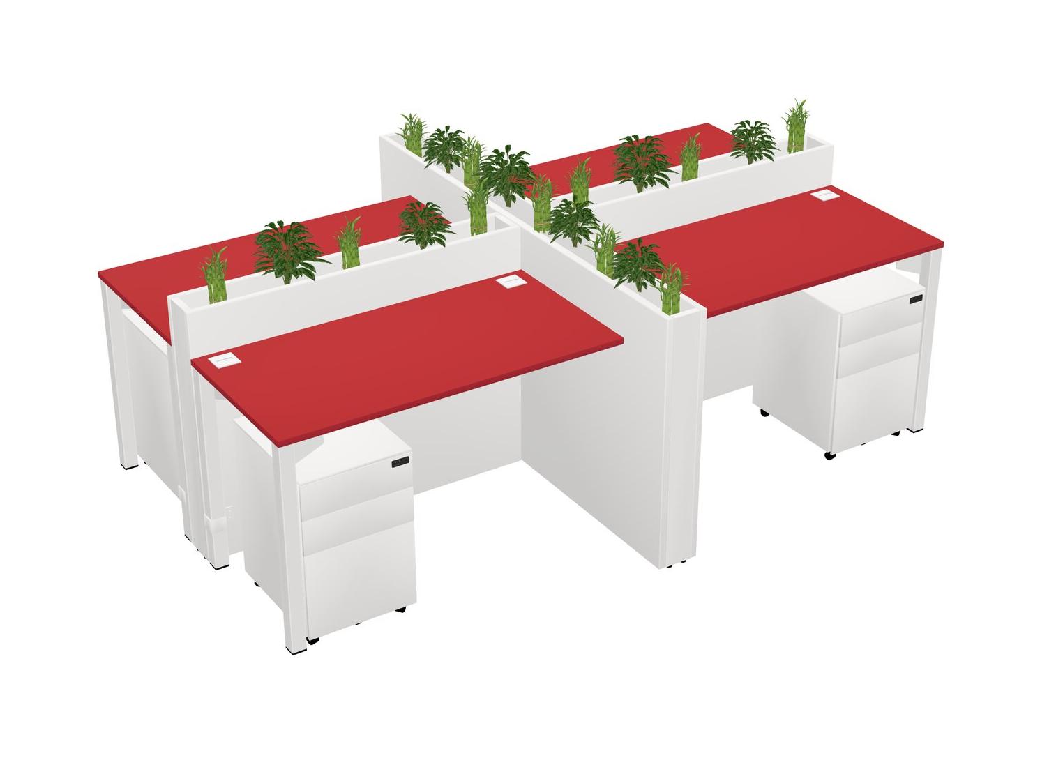 Prism Red Rectangular Shared Office Desk For 4 Persons Let Nature Help Flourish Your Productivity The Base Comes With An Adjustable Shelf To Provide Space For Pots (Pots & Plants Sold Separately)