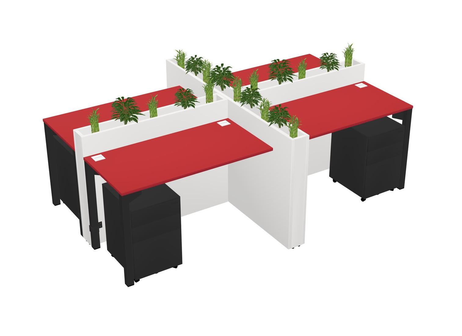 Prism Red Rectangular Shared Office Desk For 4 Persons Let Nature Help Flourish Your Productivity The Base Comes With An Adjustable Shelf To Provide Space For Pots (Pots & Plants Sold Separately)