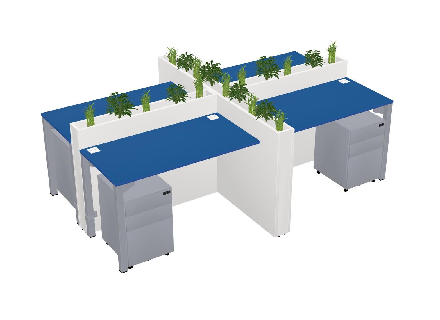 Prism Blue Rectangular Shared Office Desk For 4 Persons Let Nature Help Flourish Your Productivity The Base Comes With An Adjustable Shelf To Provide Space For Pots (Pots & Plants Sold Separately)