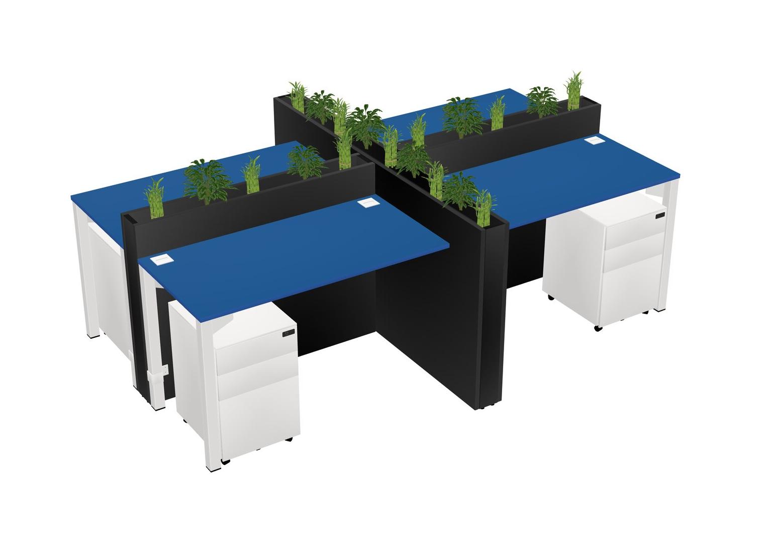 Prism Blue Rectangular Shared Office Desk For 4 Persons Let Nature Help Flourish Your Productivity The Base Comes With An Adjustable Shelf To Provide Space For Pots (Pots & Plants Sold Separately)