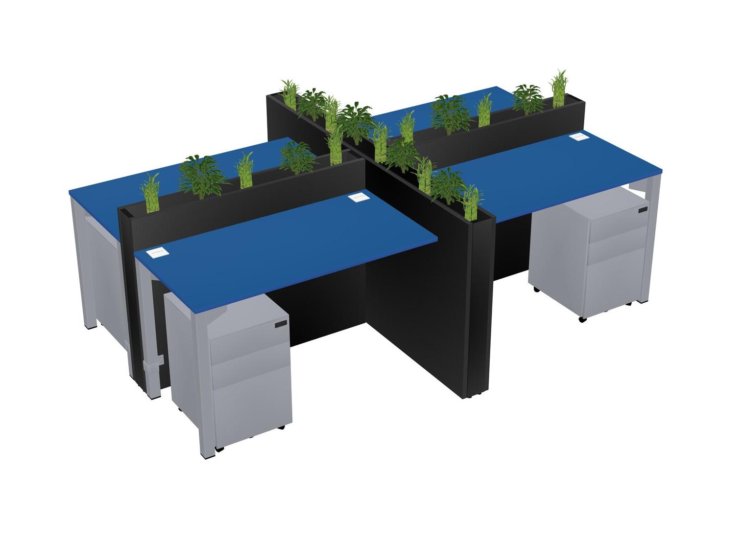 Prism Blue Rectangular Shared Office Desk For 4 Persons Let Nature Help Flourish Your Productivity The Base Comes With An Adjustable Shelf To Provide Space For Pots (Pots & Plants Sold Separately)