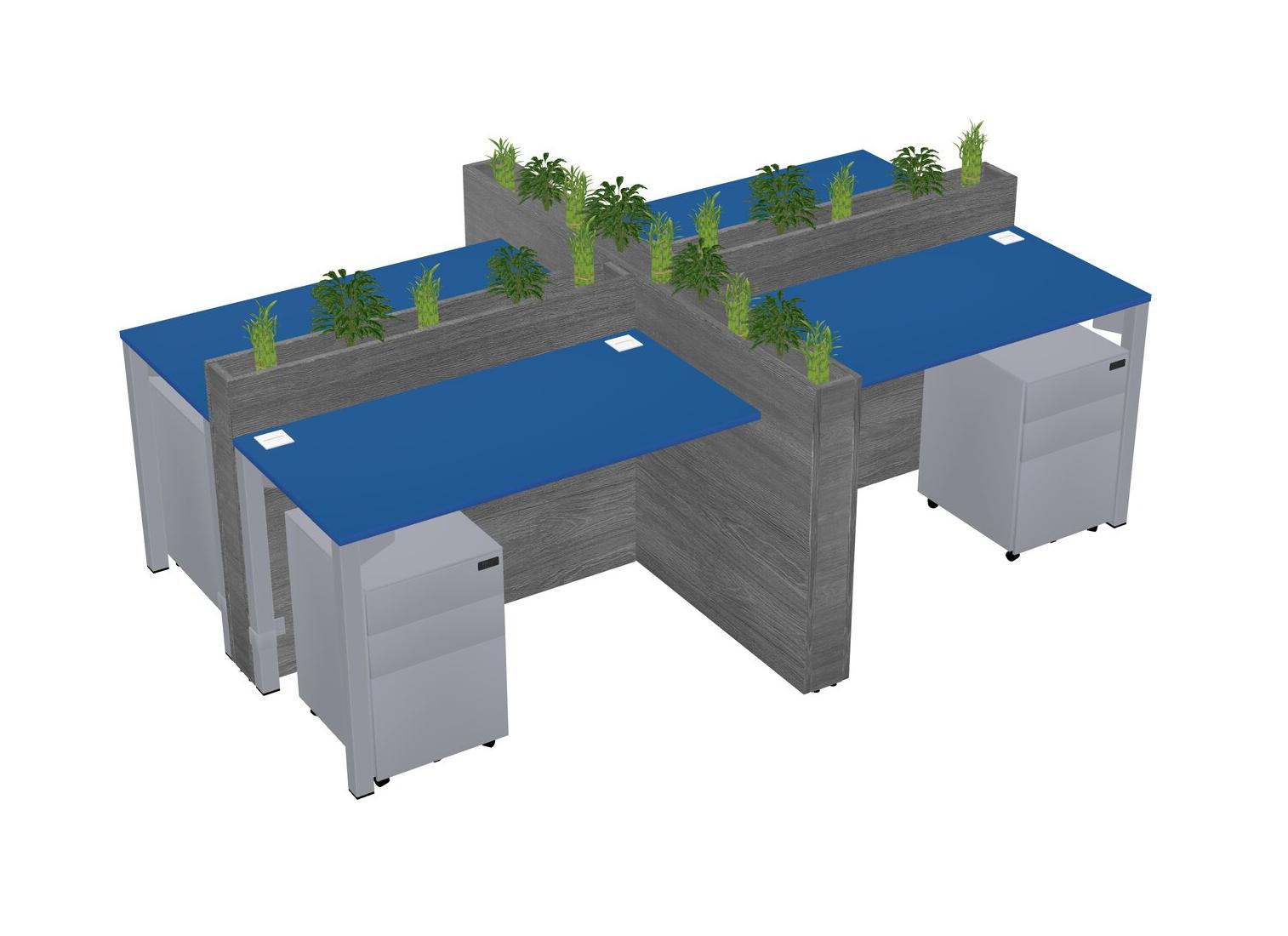 Prism Blue Rectangular Shared Office Desk For 4 Persons Let Nature Help Flourish Your Productivity The Base Comes With An Adjustable Shelf To Provide Space For Pots (Pots & Plants Sold Separately)