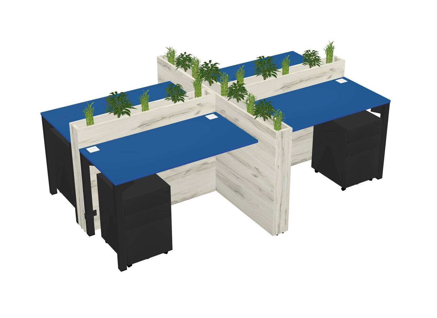 Prism Blue Rectangular Shared Office Desk For 4 Persons Let Nature Help Flourish Your Productivity The Base Comes With An Adjustable Shelf To Provide Space For Pots (Pots & Plants Sold Separately)