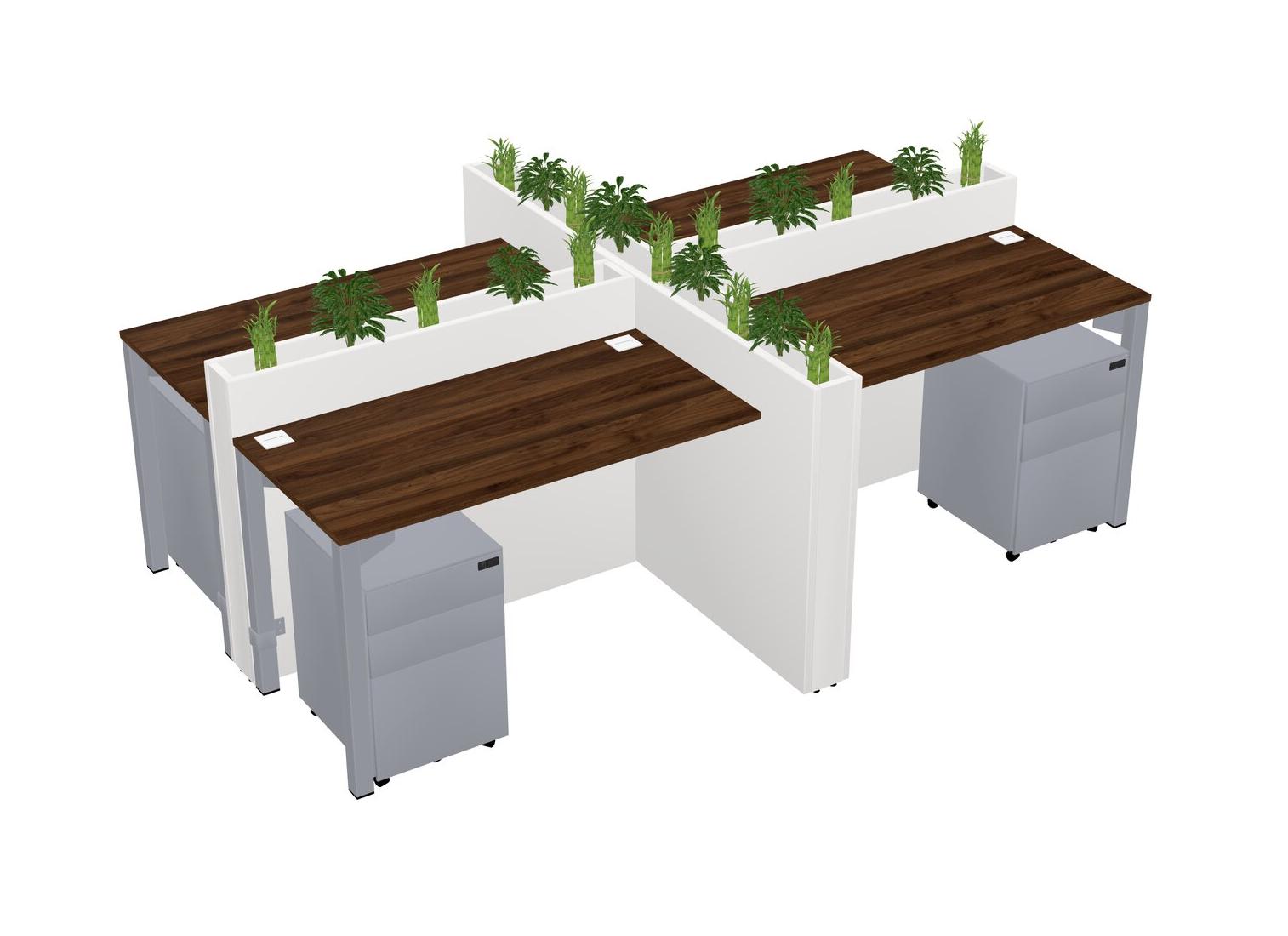 Columbia Walnut Rectangular Shared Office Desk For 4 Persons Let Nature Help Flourish Your Productivity The Base Comes With An Adjustable Shelf To Provide Space For Pots (Pots & Plants Sold Separately)
