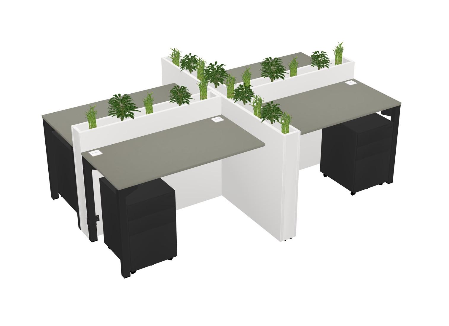 Grey Shadows Rectangular Shared Office Desk For 4 Persons Let Nature Help Flourish Your Productivity The Base Comes With An Adjustable Shelf To Provide Space For Pots (Pots & Plants Sold Separately)