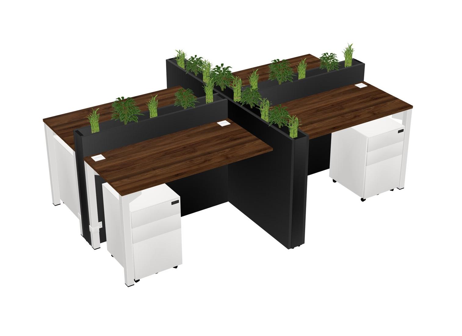 Columbia Walnut Rectangular Shared Office Desk For 4 Persons Let Nature Help Flourish Your Productivity The Base Comes With An Adjustable Shelf To Provide Space For Pots (Pots & Plants Sold Separately)