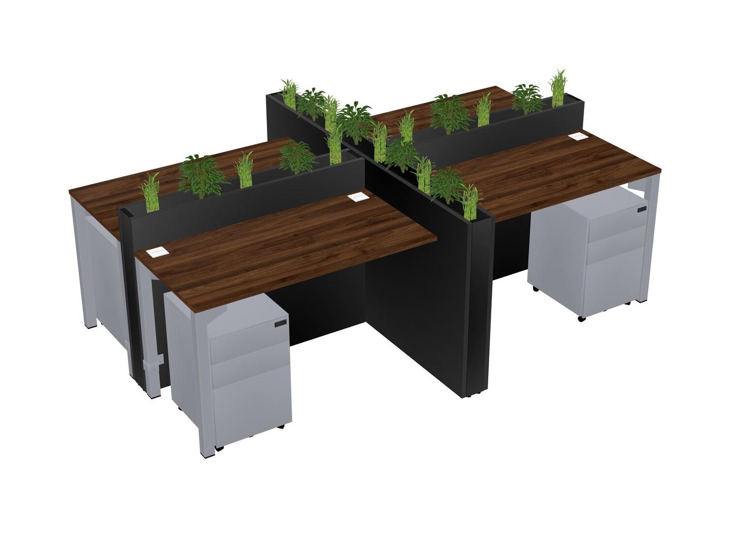 Columbia Walnut Rectangular Shared Office Desk For 4 Persons Let Nature Help Flourish Your Productivity The Base Comes With An Adjustable Shelf To Provide Space For Pots (Pots & Plants Sold Separately)