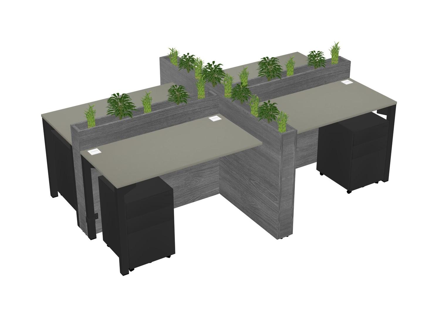 Grey Shadows Rectangular Shared Office Desk For 4 Persons Let Nature Help Flourish Your Productivity The Base Comes With An Adjustable Shelf To Provide Space For Pots (Pots & Plants Sold Separately)