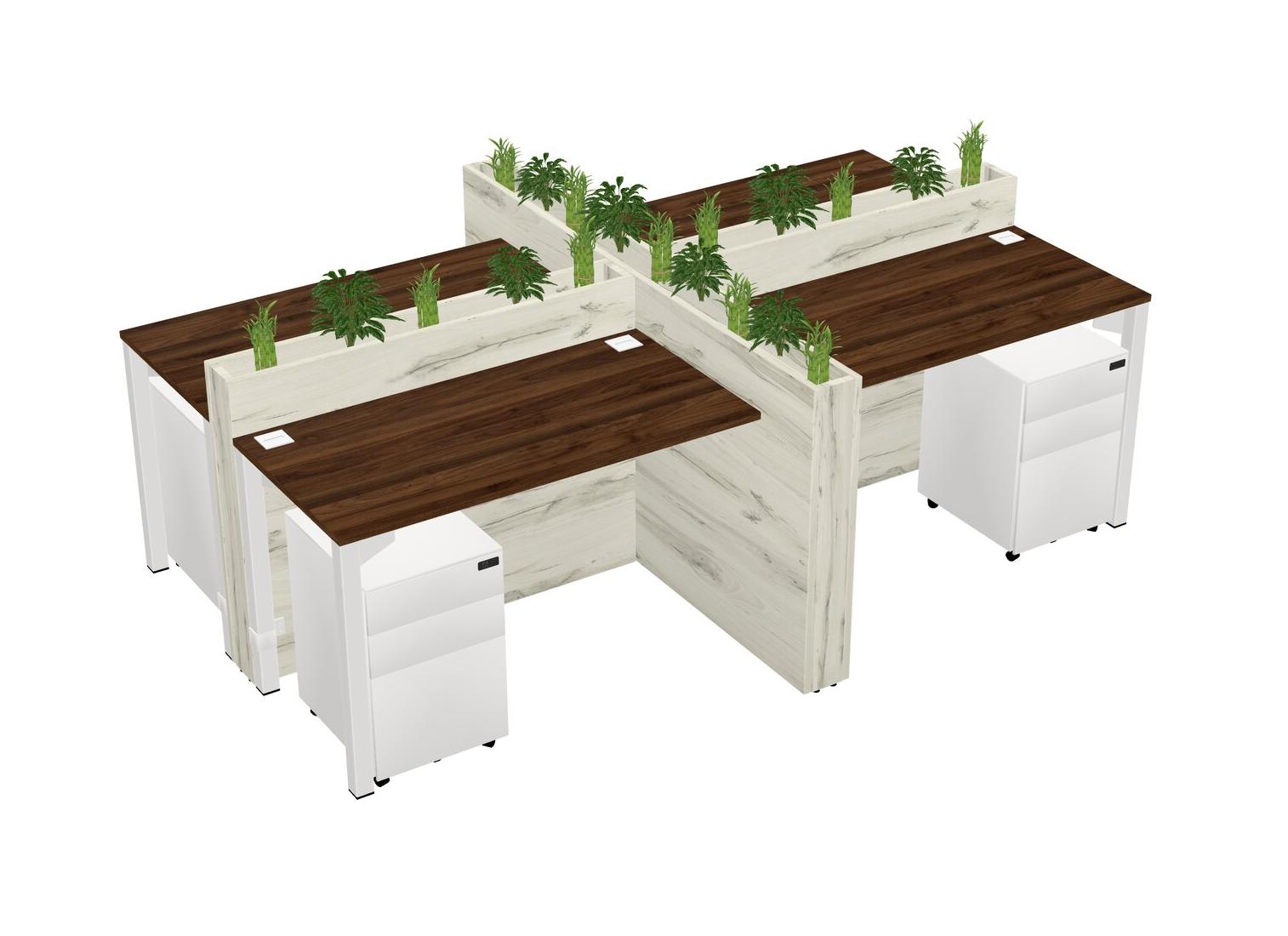 Columbia Walnut Rectangular Shared Office Desk For 4 Persons Let Nature Help Flourish Your Productivity The Base Comes With An Adjustable Shelf To Provide Space For Pots (Pots & Plants Sold Separately)