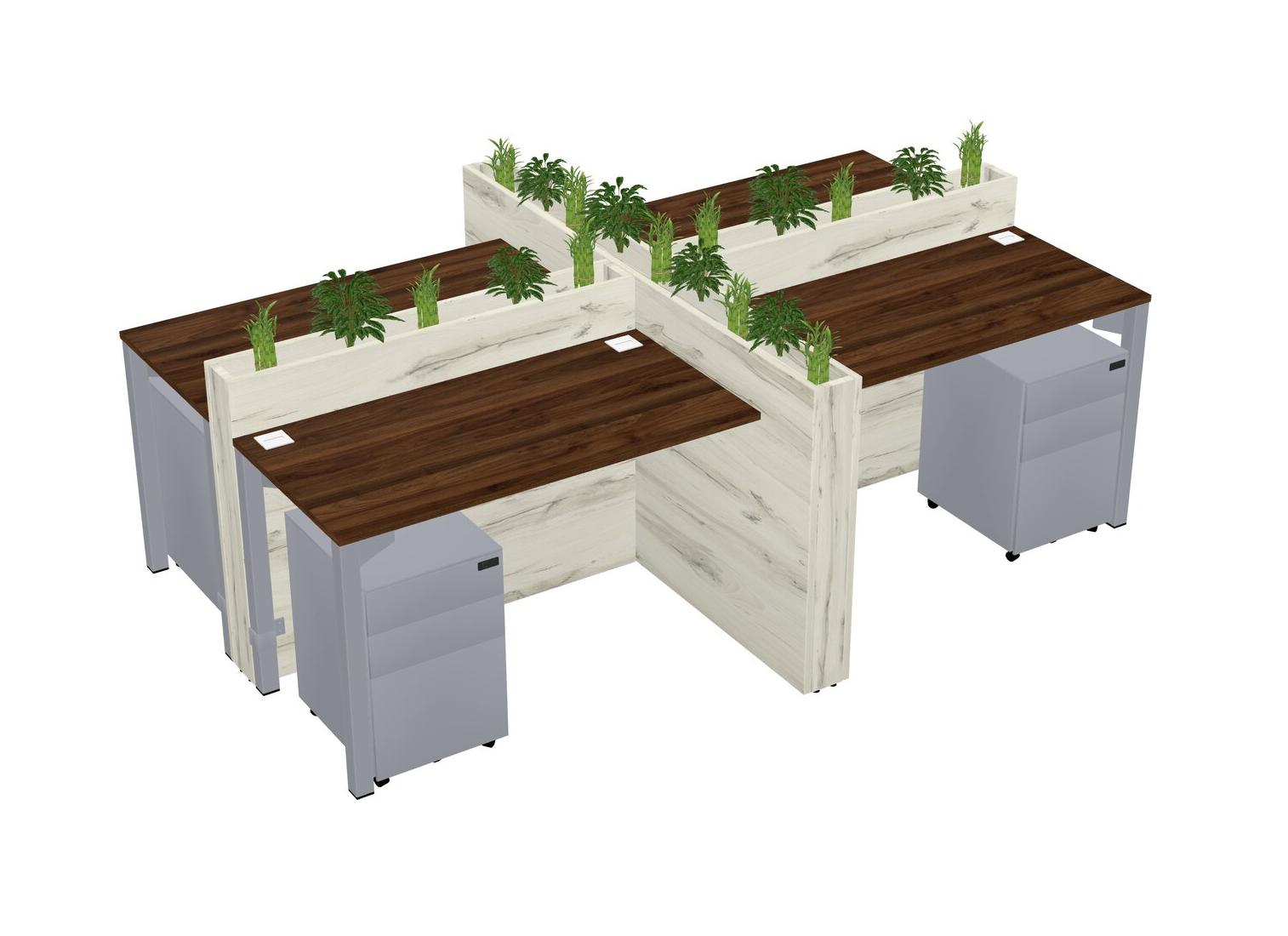Columbia Walnut Rectangular Shared Office Desk For 4 Persons Let Nature Help Flourish Your Productivity The Base Comes With An Adjustable Shelf To Provide Space For Pots (Pots & Plants Sold Separately)