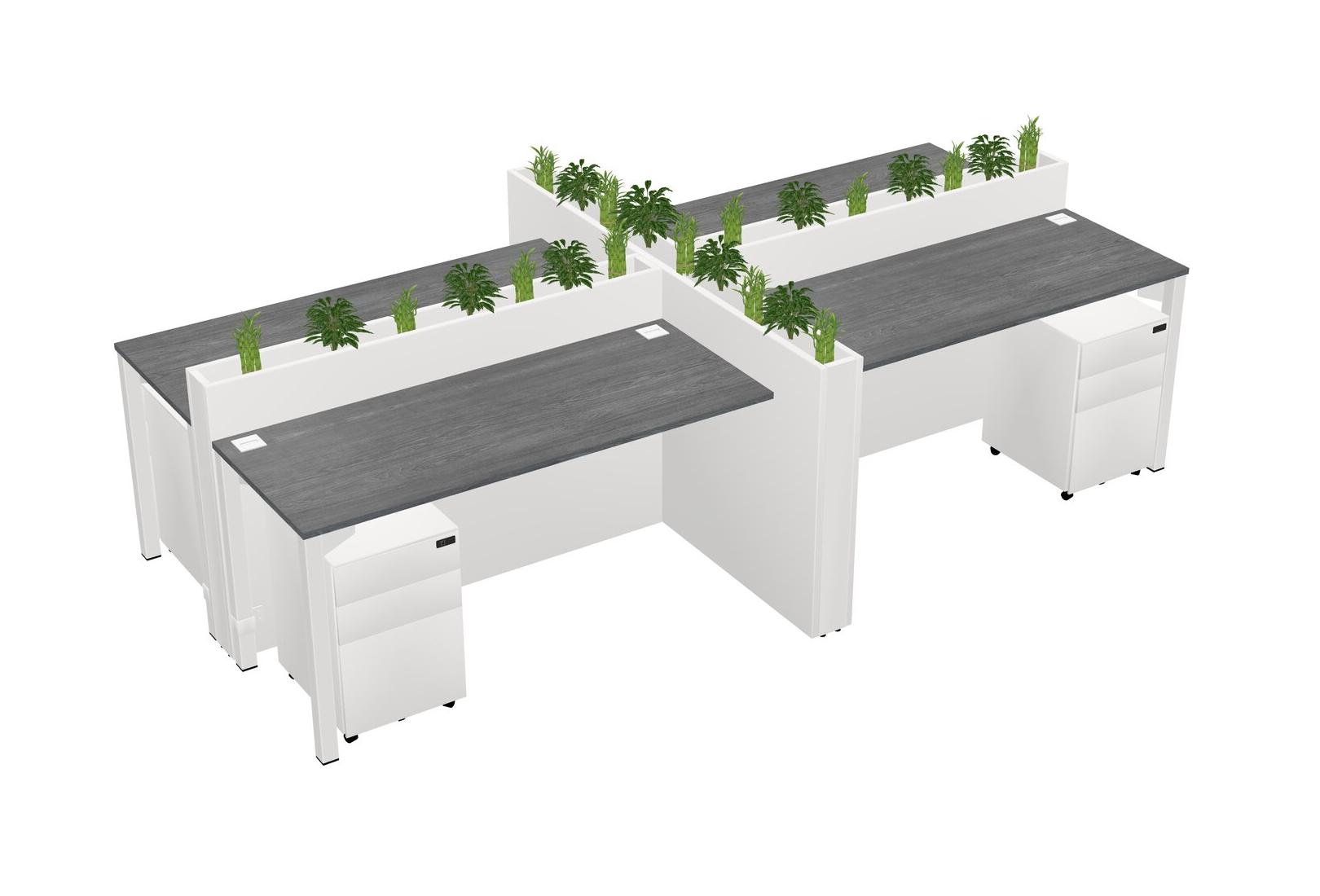 Grey Rectangular Shared Office Desk For 4 Persons Let Nature Help Flourish Your Productivity The Base Comes With An Adjustable Shelf To Provide Space For Pots (Pots & Plants Sold Separately)
