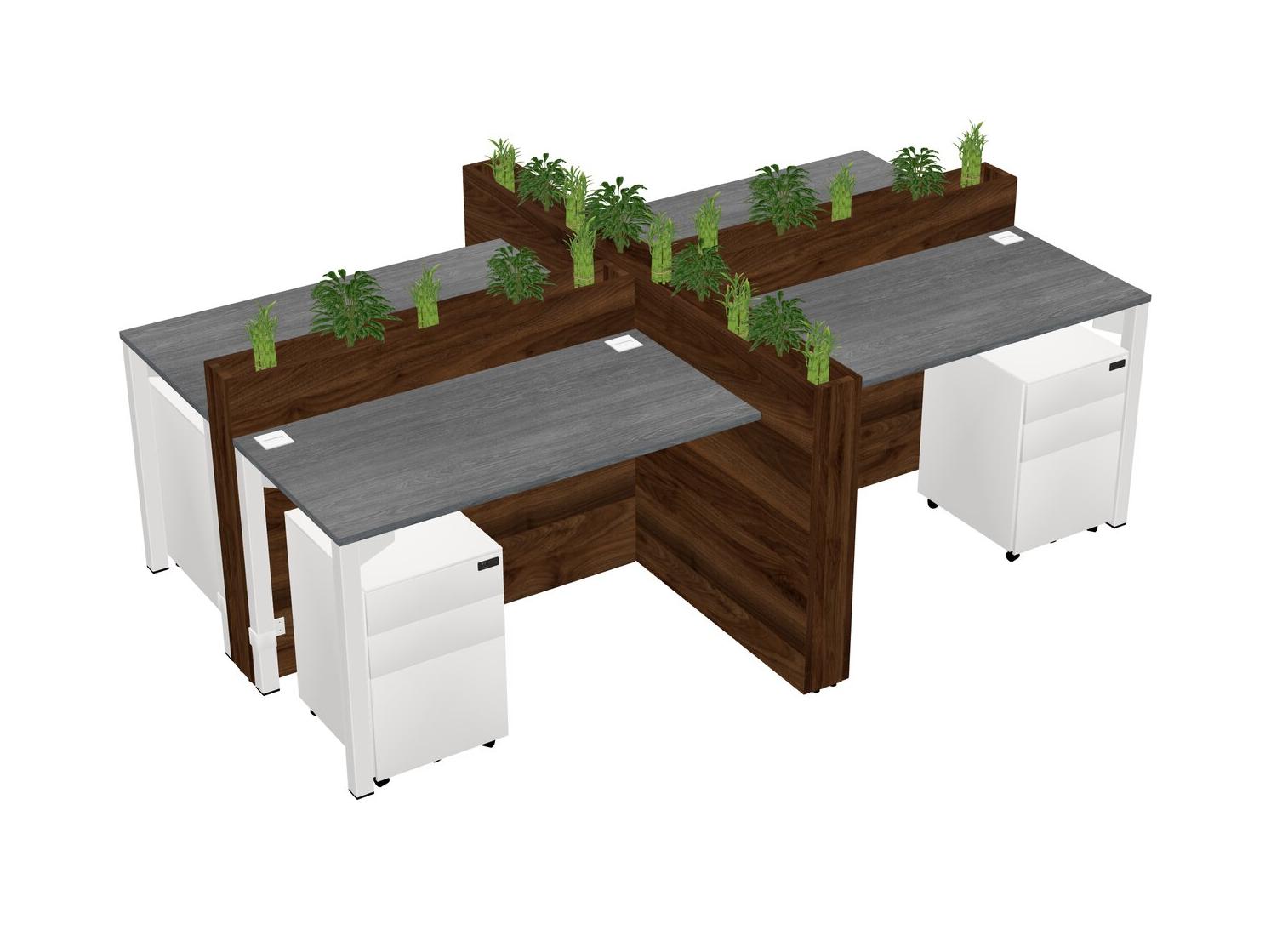 Grey Rectangular Shared Office Desk For 4 Persons Let Nature Help Flourish Your Productivity The Base Comes With An Adjustable Shelf To Provide Space For Pots (Pots & Plants Sold Separately)