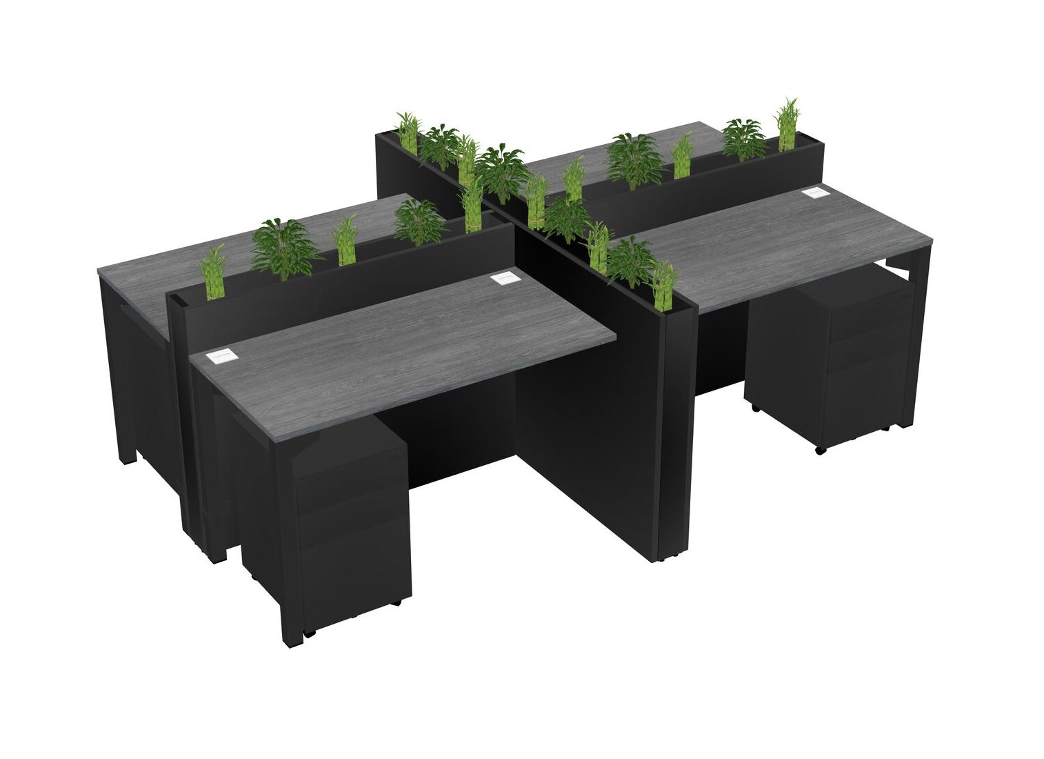 Grey Rectangular Shared Office Desk For 4 Persons Let Nature Help Flourish Your Productivity The Base Comes With An Adjustable Shelf To Provide Space For Pots (Pots & Plants Sold Separately)