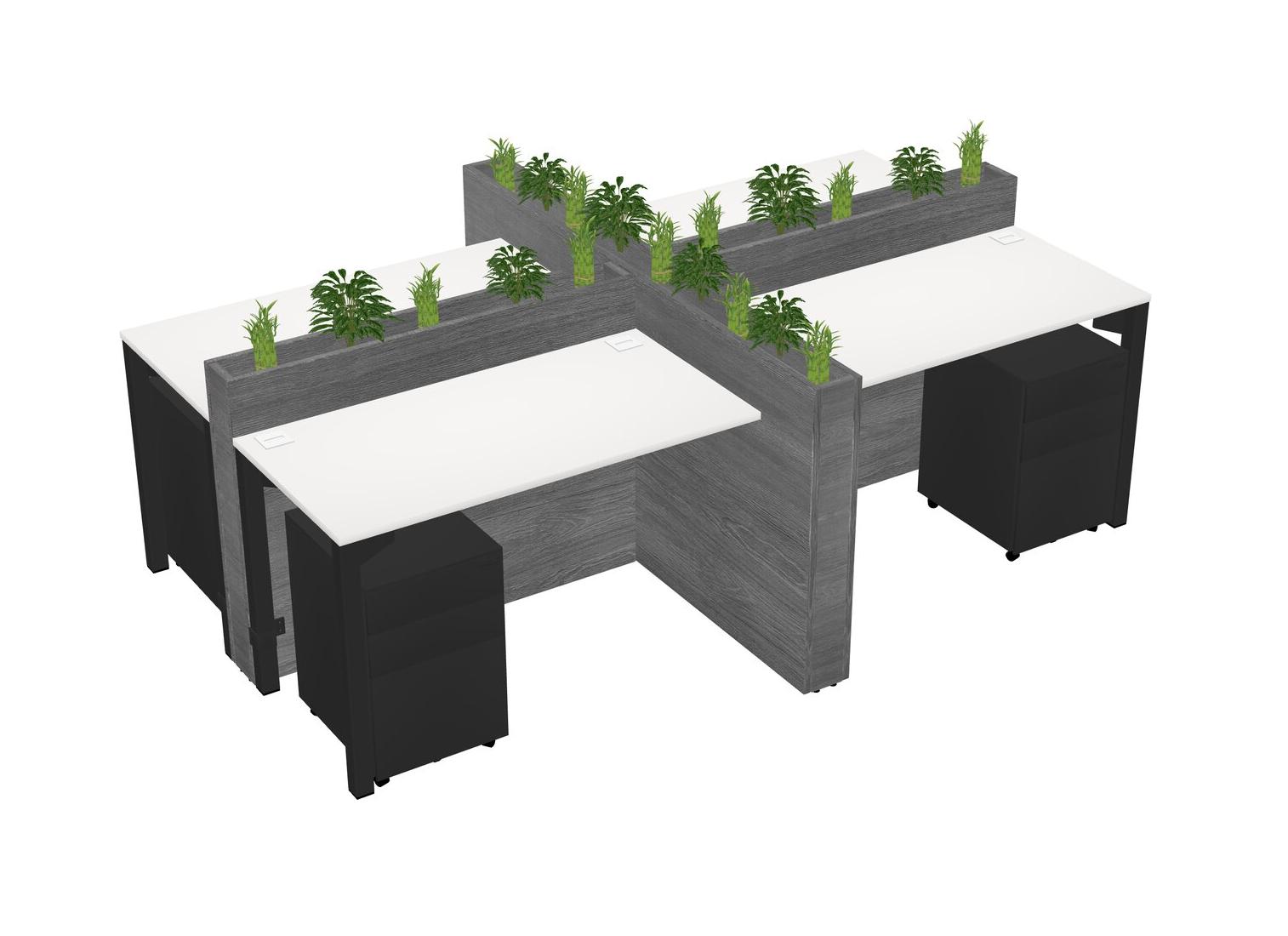 White Rectangular Shared Office Desk For 4 Persons Let Nature Help Flourish Your Productivity The Base Comes With An Adjustable Shelf To Provide Space For Pots (Pots & Plants Sold Separately)