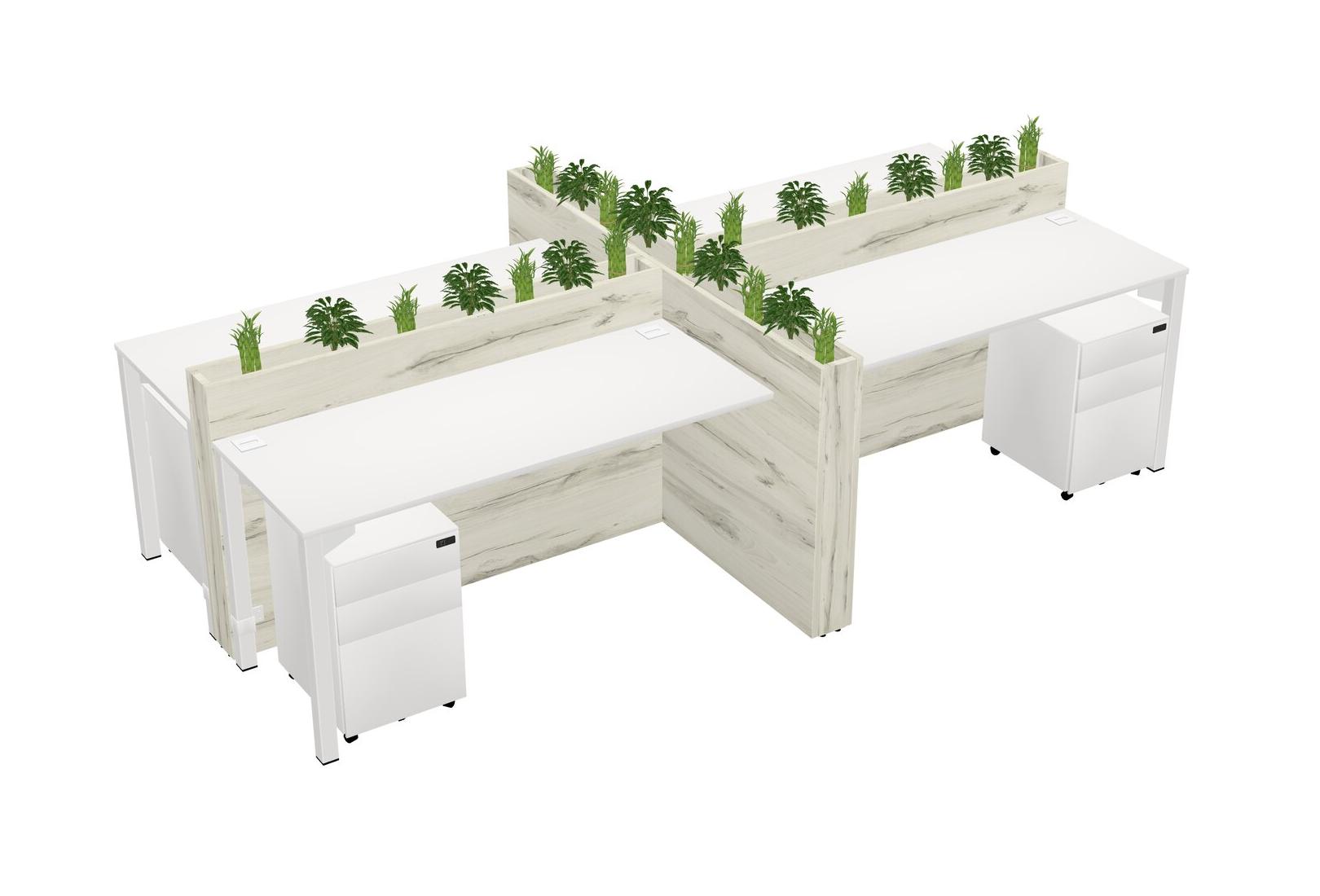 White Rectangular Shared Office Desk For 4 Persons Let Nature Help Flourish Your Productivity The Base Comes With An Adjustable Shelf To Provide Space For Pots (Pots & Plants Sold Separately)