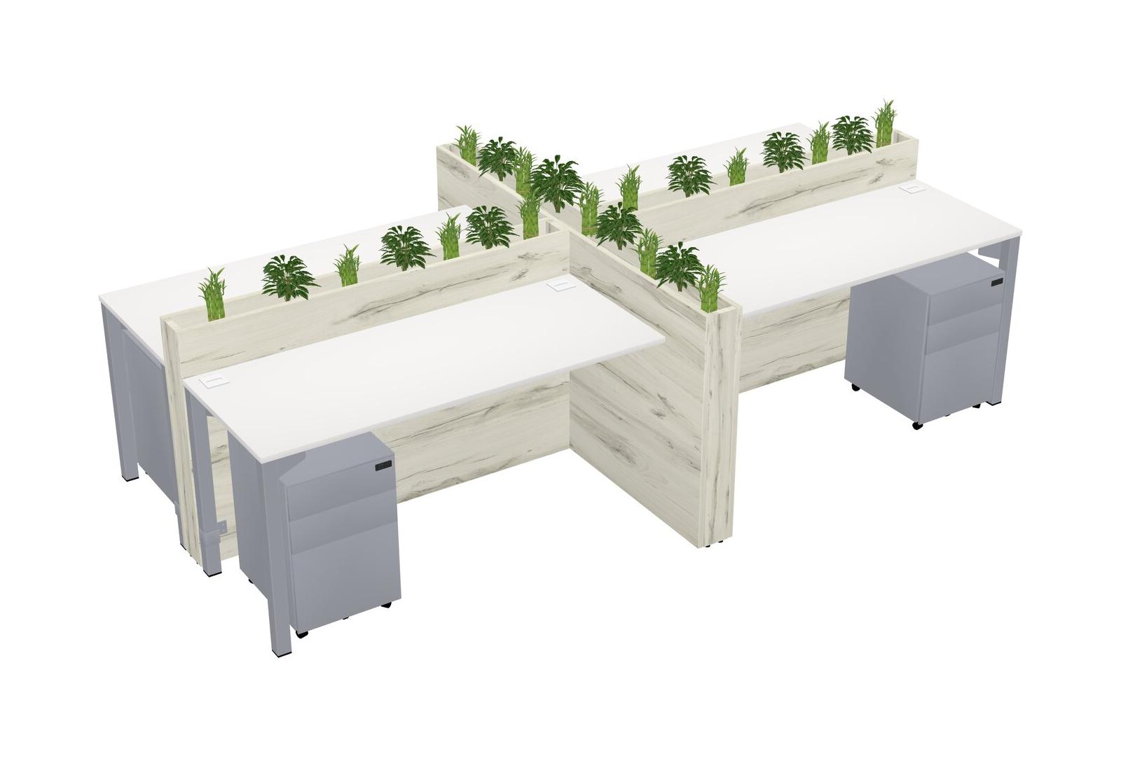 White Rectangular Shared Office Desk For 4 Persons Let Nature Help Flourish Your Productivity The Base Comes With An Adjustable Shelf To Provide Space For Pots (Pots & Plants Sold Separately)